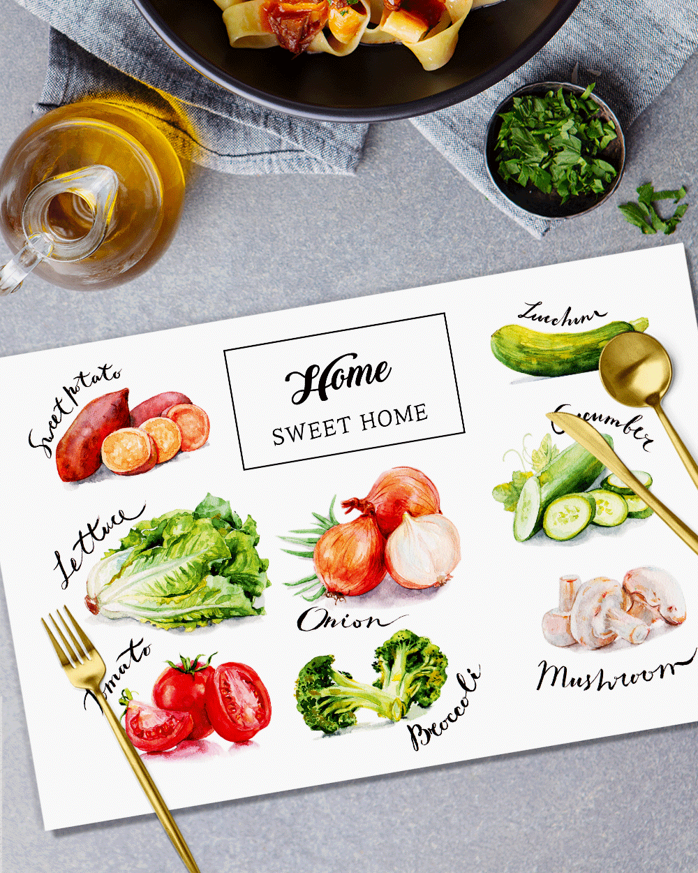 Vegetable-17"x11" 50pcs, Disposable Place Baby Showers, Bridal Shower Table Setting Seasonal Party Kitchen Home Decor Dining